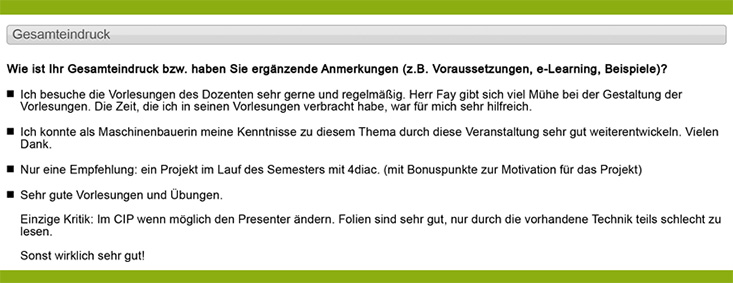 Die Veranstaltung war intensiv für alle Beteiligten, aber ein großer Erfolg. Das Evaluationsergebnis „sehr gut“ unterstreicht dies (die Evaluation ist unter Automatisierung verteilter Systeme sichtbar).